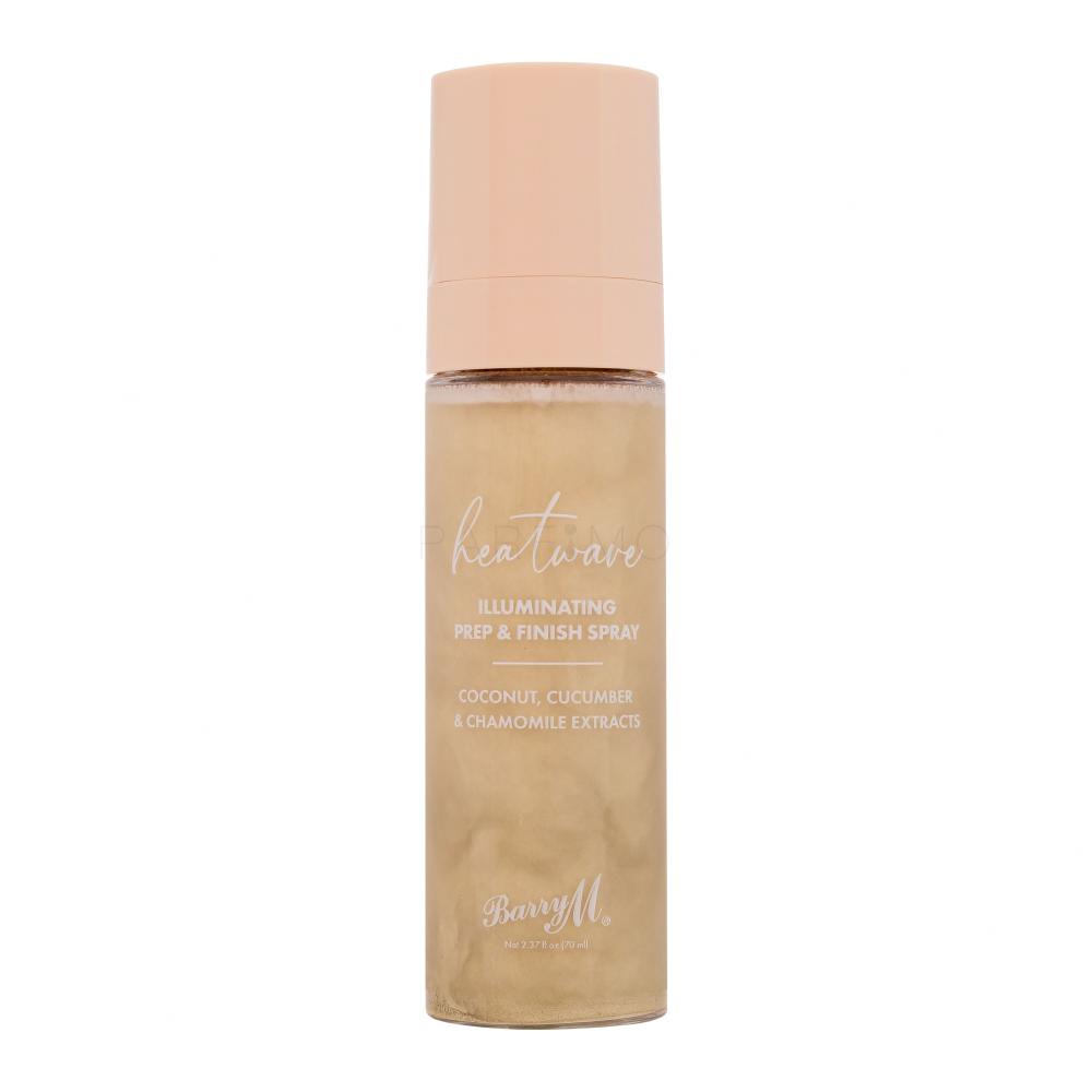 A fáradt, szürkés arcbőr a múlté, ha a Barry M Heatwave Illuminating Prep & Finish Spray bőrélénkítő spray-t választja. Arany csillámok és kamillakivonatokkal, uborkával, kókusszal gazdagított összetétele életet lehet az arcbőrébe, hidratálja és egészséges kinézetűvé teszi.