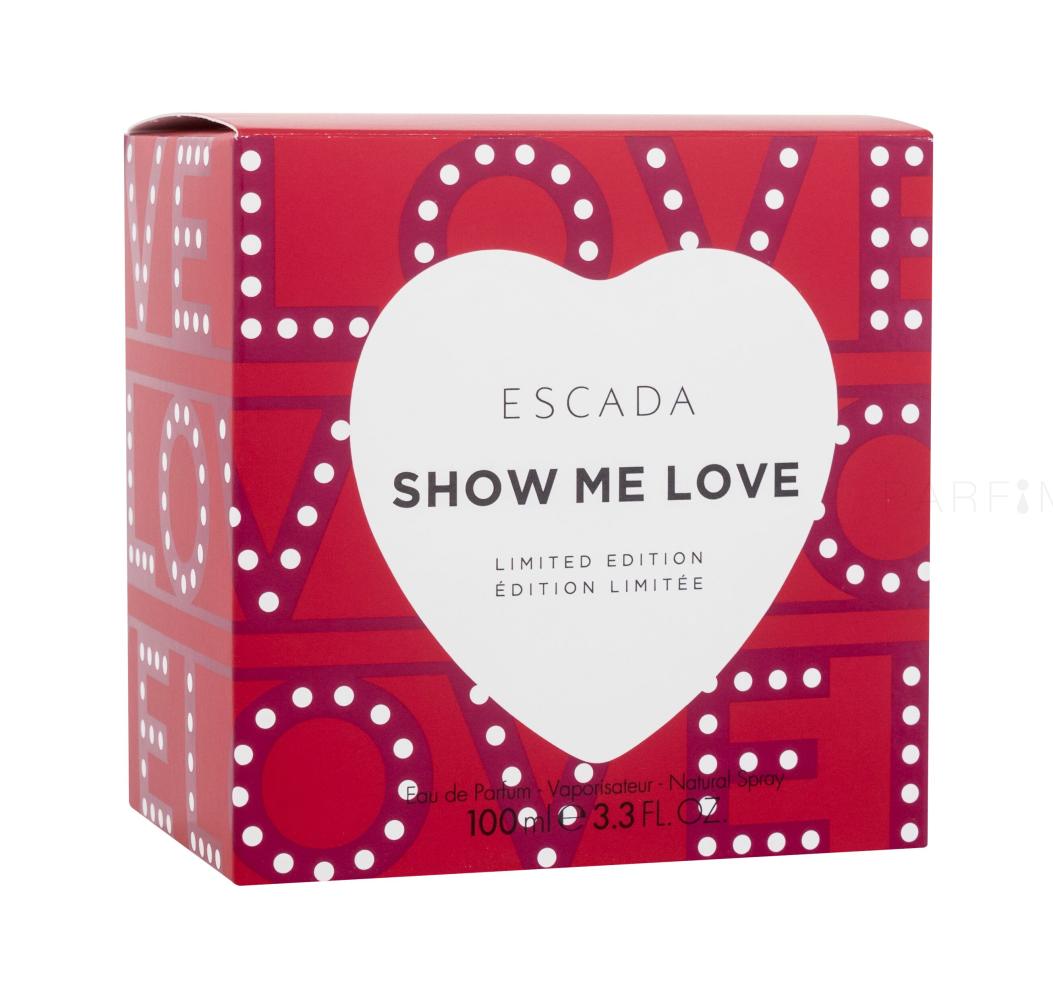 A Show Me Love Eau de Parfum a Candy Love Eau de Toilette (2020) és a Fairy Love (2021) követőjeként jött létre. A keresett német ESCADA feltűnő, színes ruhákat, táskákat és illatszereket kínál. A könnyen felismerhető ESCADA a pipereasztaloknak egy harmadik bájos szív alakú illatszert is kínál a Show Me Love Eau de Parfum formájában. Erősebb, mint az Eau de Toilette illattípus, így hosszabb illatélményt ígér. Ne habozzon, válassza az ESCADA Show Me Love sztárként ragyogó illatát. Ne kerülje el figyelmét a Broadway ismert „love” felirata se, ami az Eau de Parfum csomagolására is felkerült, és a színházak bársonyfüggönyét idézi. Ez az az illat, amely mindig és mindenhol ragyogóan hat.