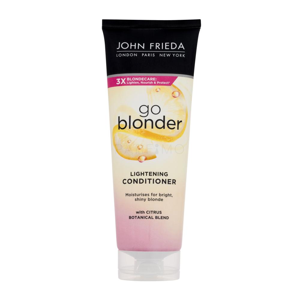 A John Frieda Sheer Blonde Go Blonder szőkítő hajkondicionáló hosszabbítja a hajszín élettartamát, világosít és ragyogóbbá tesz. Káprázatos fényt és tartást kölcsönz a hajnak. Intenzíven hidratál és táplál a szép és életerős hajért. Használat után a haj könnyen fésülhető és formázható.