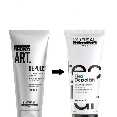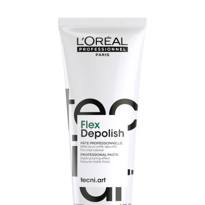 A L'Oréal ProfessionnelTecni.Art Depolish hajformázó pasztával könnyen készíthető kócos haj és laza frizura. Erősen fixál és erőteljes matt hatása kemény ábrázatot biztosít.
