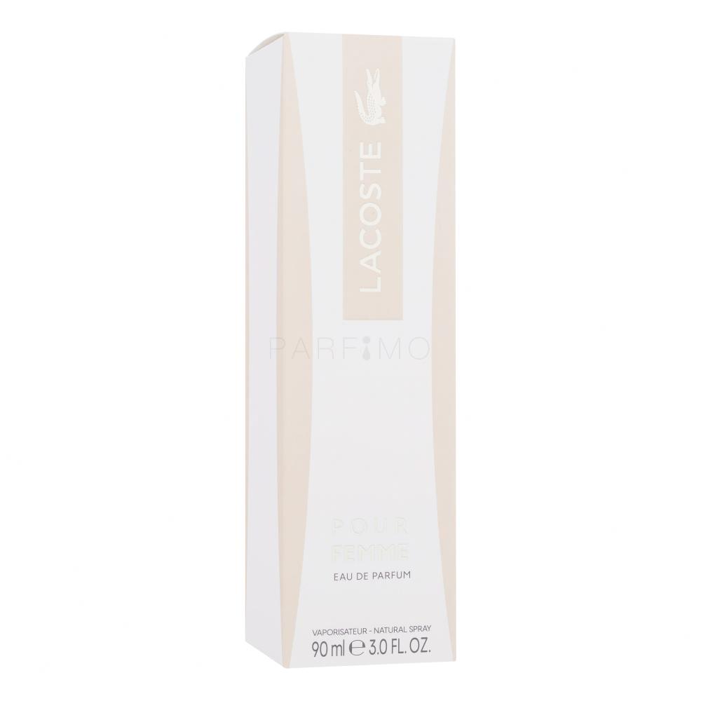 A Lacoste Pour Femme Eau de Parfum egy telt, jókedvet sugárzó női illat, amely 2003 óta kapható. Modern, letisztult stílusú illatalkotás azon nők számára, akik természetüknél fogva vonzók és bájosak, bátrak, sikeresek, ugyanakkor érzelmesek, és képesek megosztani érzelmeiket a környezetükkel. A Lacoste nő hatalmas belső szépséget birtokol, amivel viszont nem hivalkodik, így a férfiak zöme nagyon vonzónak találja.