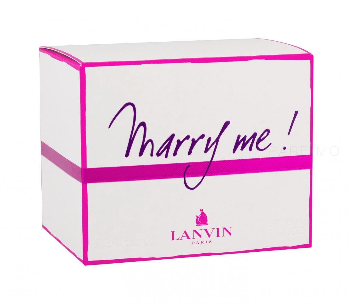 A Lanvin Marry Me! Eau de Parfum (2010) küldetése egyértelmű. Az illatkompozíció gyengédség és romantika átszőtte szerelmi bájitalként hat. Az illatról szinte ordít a „Vegyél el!”, amit az a nő ihletett meg, aki azonosul az illatszerével. Az illatok ugyanis hatalmas mennyiségű érzelmet hordoznak, és ahhoz, hogy egy nő kiválassza az igazit, fontos a szikra, a kémia. Egy illatszer küldetése, hogy második bőrként viselkedjen, amely viselőjét árnyékként követi, és örömet, boldogságérzést kelt benne. A Lanvin Marry Me! Eau de Parfum örömteli mosolyra fakaszt, nőies jellegű, és azonos érzelmeket vált ki, mint egy jól eső ölelés.