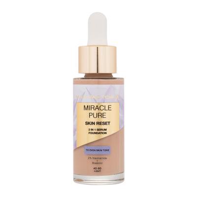 A Max Factor Miracle Pure Skin Reset 2in1 Serum Foundation az alapozó és az arcszérum előnyeit ötvözi. Nemcsak tökéletesen fed, hanem intenzíven ápolja is az arcbőrt. A hidratáló és regeneráló összetevőkkel gazdagított formula segít javítani az arcbőr textúráját, kisimítani az apró ráncokat és egészséges, üde kinézetet kölcsönözni az arcbőrnek.