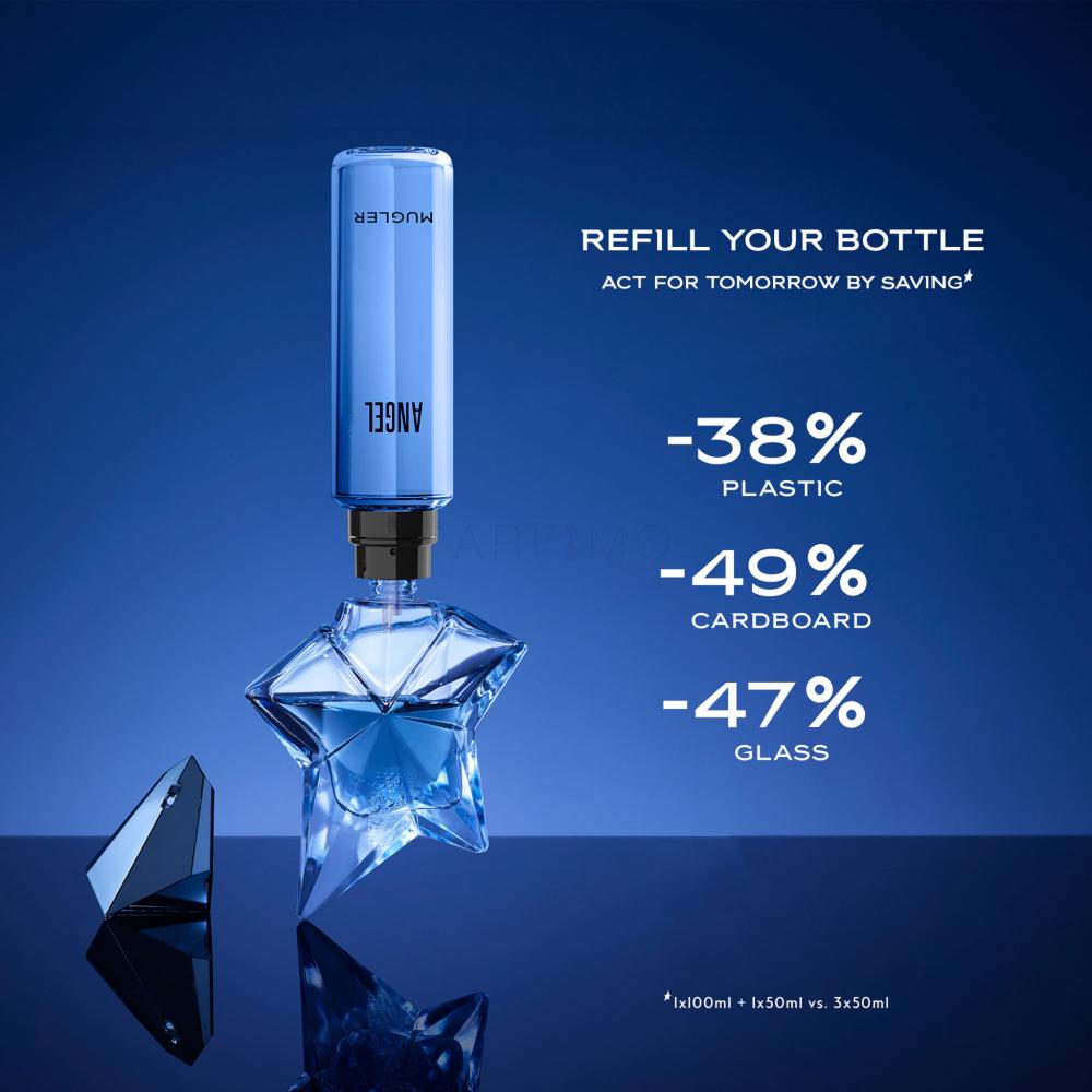Kevés olyan tündöklő illat van, mint a Mugler Angel. Mennyei illat, amit már a neve is sejtet: Angel vagy angyal. Témába vág a csillag alakú parfümös üveg is, akárcsak maga az illatfelhő, amely mennyei magasságokba röpít. A parfümök világának legjava között helyet foglaló illatalkotás 1992-ben látott napvilágot, és azóta is a legfényesebb csillagként ragyog.