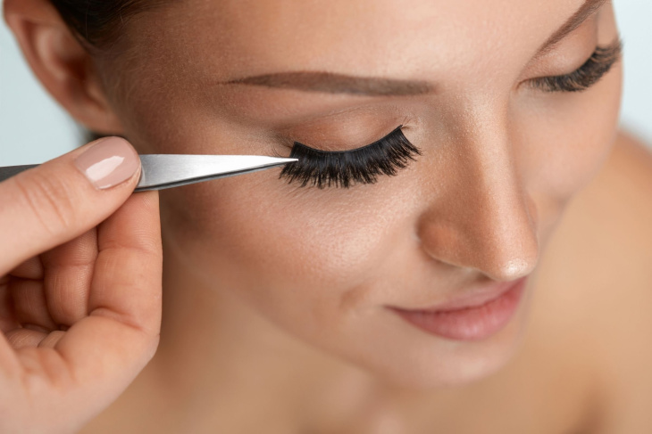 Csipesszel helyezze a műszempillát minél közelebb a felső szempillasorhoz. Kissé nyomja meg középen, majd a szem külső és végül a belső sarkában. Tartsa a műszempillát ilyen helyzetben, amíg az meg nem szárad. Helyezze a kis csomókat az egyes szempillákhoz, minél közelebb a szem belső sarkához, és egy kis ideig tartsa meg.