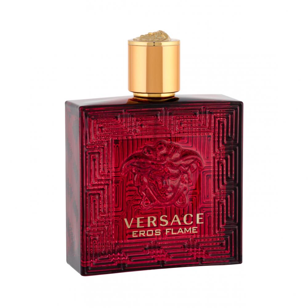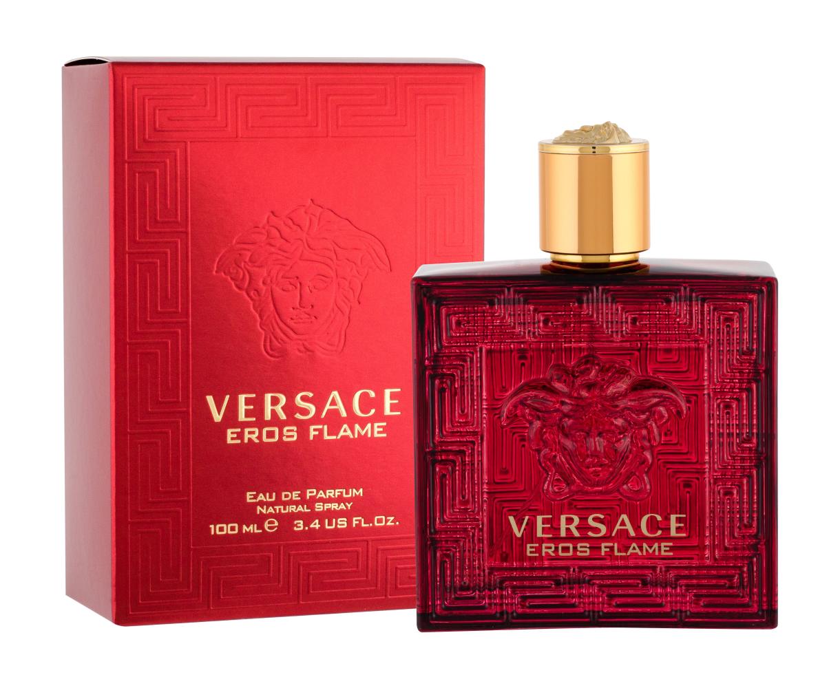Az Eros Flame férfi illat intenzív mandarinnal, citrommal, mirtuszlevelű törpenaranccsal (chinotto), fekete borssal és rozmaringgal indul. A virágos szívben rózsa és muskátli uralkodik, ismét borssal megfűszerezve. Az alap legerősebb összetevője a vanília és a tonkabab, ehhez társul a texasi cédrus, szantálfa, pacsuli és tölgymoha. Az illat általánosságban pikánsabb, orientálisabb, mint az eredeti Versace Eros (2012) fougere illatkompozíció. Az illatkampányt Erós és Psyché szobra ihlette.